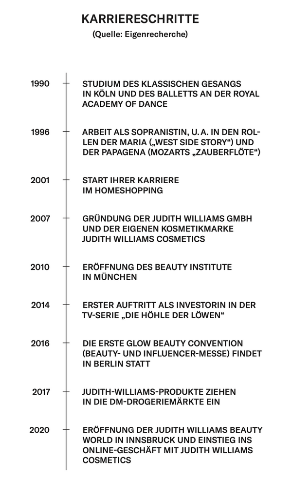 „Es ging Stück für Stück. Ich erzähle diese Geschichte immer gerne, weil ich andere Menschen inspirieren will, die – so wie ich – nicht BWL studiert haben“, grinst Williams. Alles begann damit, dass sie zunächst Lizenzgeberin für die Judith-Williams-Brand war. „Die Marke wurde allerdings sehr schnell sehr bekannt und beliebt, sodass diese grossen Mengen von Cura nicht mehr vorfinanziert werden konnten. Die Judith-Williams-Brand hat damals über 90 % des gesamten Geschäftes von Cura ausgemacht“, so die Unternehmerin weiter. Der damalige Mehrheitseigentümer und Gründer von Cura Cosmetics, Roland Kohl, ging dazu über, Williams stattdessen immer weiter an seinem Unternehmen zu beteiligen. Darüber hinaus, so heisst es, habe die Chemie zwischen den beiden von Beginn an immer gestimmt: „Meine Anteile sind so über die Jahre immer weiter gewachsen, sodass ich heute mit rund 80 % Mehrheitseigentümerin bin.“