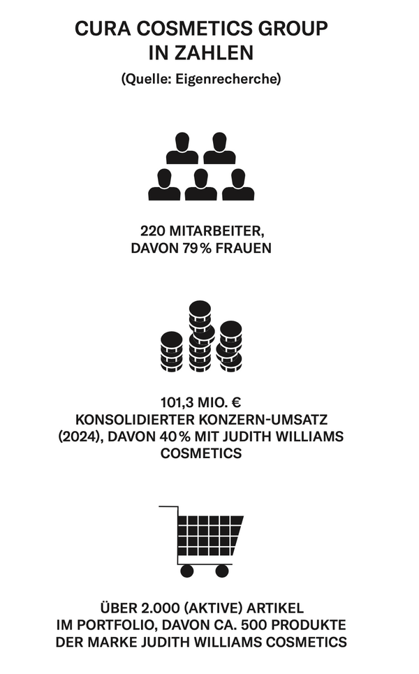 Heute vereint die Cura Cosmetics Group fünf grössere Bereiche unter ihrem Dach: Cura Beauty Labels (als White-Label-Anbieter für u. a. Drogerien wie Bipa, DM oder Rossmann), Cura Beauty UK (Teleshopping), Judith Williams Beauty World (Kosmetikinstitut), Lifestyle Fragrance & Beauty (Lizenz- und Eigenmarken mit Fokus auf Parfum) und Start Now Consulting (Venture-Capital-Unternehmen). Mit 220 Mitarbeitern, 79 % davon sind weiblich, setzt die Cura Cosmetics Group rund 100 Mio. € (2024) um, wobei mehr als 40 % des Umsatzes von der Marke Judith Williams erwirtschaftet werden. Neben den Kosmetikriesen Europas von L’Oréal bis Beiersdorf hat es sich die Cura Cosmetics Group in ihrer eigenen Nische gut eingerichtet. Spricht man Williams auf direkte Konkurrenten wie etwa Börlind oder Weleda an, will sie diese als geschätzten Mitbewerb sehen. Einen Zickenkrieg, den man den Mitbewerbern dieser Branche nachsage, den sehe sie einfach nicht.