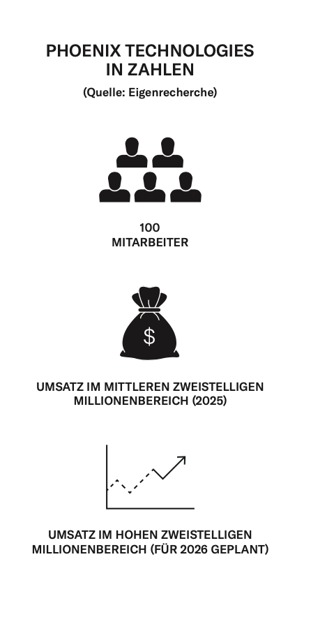 Phoenix Technologies hat Grosses vor: Mit rund einhundert Mitarbeitern erwirtschaftete das Gründerteam rund um Taroni sowie seine Mitgründer Carla Bünger, Bruder Stefan Taroni sowie CEO Angel Nunez Mencias im Jahr 2025 Umsätze im mittleren zweistelligen Millionenbereich; ARR wohlgemerkt, also «Annual Recurring Revenue», was jährlich wiederkehrenden Abo-Umsatz bezeichnet. Vor drei Jahren lag diese Zahl noch im mittleren einstelligen Millionenbereich, das Wachstum ist also rasant. Konkrete Zahlen will Taroni im Gespräch nicht kommentieren, das Ziel für 2026 sei aber klar: Den Umsatz weiterhin deutlich erhöhen – bis Jahresende soll der Umsatz im hohen zweistelligen Millionenbereich liegen. Gleichzeitig überdenken Taroni und sein Team auch den bisher konservativen Ansatz, was Fremdkapital angeht. Denn Wachstum braucht in diesem Bereich enorme Summen an Kapital – nur so kann Phoenix sicherstellen, dass man im Wettrüsten «der Grossen» mithalten kann.