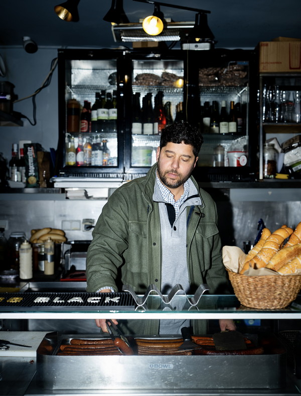 „Entschuldigung, ich musste noch einen Parkplatz suchen“ – Sebastian Neuschler eilt auf seinen Würstelstand am Börseplatz zu, die Hände tief in den Hosentaschen vergraben. Der Himmel an diesem Wintertag ist grau und im ersten Wiener Gemeindebezirk fegt ein kalter Wind durch die Strassen. Neuschlers Stimmung scheint das nicht zu drücken, oder vielleicht führt er einfach wirklich gerne Schmäh: Während unseres Interviews begrüsst er einen angeblichen Stammgast („Der ist einmal auf zehn Flaschen Champagner vorbeigekommen“, sagt er mit einem Grinsen, das der Passant in Anzug und Krawatte erwidert), seinen Fleischlieferanten („Ciao, Paolo!“) und so ziemlich jeden anderen Fussgänger, der vorbeigeht („Die Damen, kommen S’ ruhig. Dann sind Sie auch mit auf dem Foto – ich freu mich!“). Auch der Parkraumüberwacherin, die ihre Runden dreht, winkt er zu und sagt mit einem frechen Grinser zu uns: „Sie hat mich sehr gerne.“ Wenig später bekommt er doch Angst – er stehe in der Ladezone – und eilt kurz davon, um einen neuen Parkplatz zu suchen.
