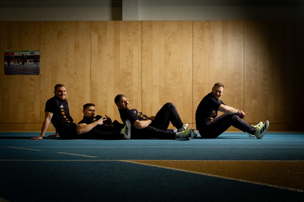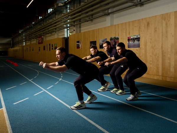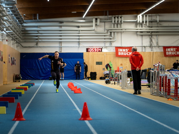 In der Sporthalle hinter den Klettertürmen in der Innsbrucker Matthias-Schmid-Strasse nimmt in der Zwischenzeit das Training der Bob-Olympiamannschaft langsam Fahrt auf. Felix Straub ist der schnellste Läufer im Team. Er nimmt die hinterste Position in der Mitte bzw. am Ende des Viererbobs ein, hakt das Kabel des sogenannten „1080 Sprint“-Geräts mit einem Karabiner an einen Stoffgurt, den er um die Hüften trägt, und sprintet explosionsartig los. Die durchschnittlichen Start- und Endgeschwindigkeiten, also die Geschwindigkeit beim Einstieg des vierten Mannes, liegen bei 45 km/h, „in Cortina sogar bei 47 km/h“, sagt Gerd Leopold. Die Kabelwinde surrt in hohem Ton auf. Das in Schweden entwickelte Gerät wird im Widerstands- und Geschwindigkeitstraining eingesetzt, erklärt er. Dabei kann die Zugkraft unterschiedlich eingestellt werden. „Da der Bob rund 210 kg schwer ist, teilt man das Gewicht etwa durch vier, auf die Anschieber und den Piloten“, erklärt der Trainer die individuellen Last- und Geschwindigkeitseinstellungen. Immer wieder blickt er auf die Anzeige des „1080“ – „Felix ist in Bestform“, sagt er zufrieden, „alle im Team bringen aktuell Höchstleistungen.“ Denn eines müsse hier auch klar sein, so Leopold bestimmt: „Wer mit Francesco als Pilot antritt, weiss, dass er um Gold fährt und nicht um den sechsten Platz.“ Friedrich ist, da ist Leopold ganz eindeutig, „der absolute Leader. Und den Besten macht aus, dass er in der Stunde, wo er gefordert ist, abliefert. Viele können samstags liefern, aber sonntags, wenn alle zuschauen, können sie nichts mehr. Du musst bringen. Das allein ist die Eigenschaft, die du als Dominator, wie Francesco einer ist, hast. Ansonsten bist du nicht so lange an der Weltspitze.“