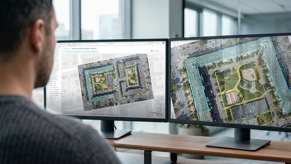 Bestandsmanagement neu gedacht. Drohnenaufnahmen kombiniert mit KI-basierter Bildanalyse liefern präzise Informationen über Dächer, Fassaden und Grünflächen, flächendeckend und in kurzen Zyklen. Was zuvor wochenlange Berichtsarbeit bedeutete, verdichtet sich zu automatisierten Analysen in einem Bruchteil der Zeit, inklusive Nachweis der Verkehrssicherungspflicht.